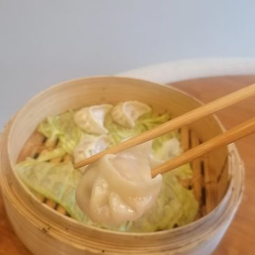 Cover and steam for 10-12 minutes on high heat until the wrappers look wrinkly and translucent.