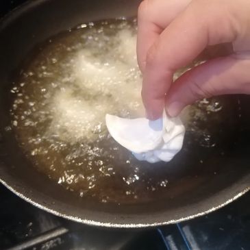 TIP: Dip the tip of a dry, wooden chopstick in the centre of the oil. If you see tiny bubbles, you'll know the oil's hot enough!