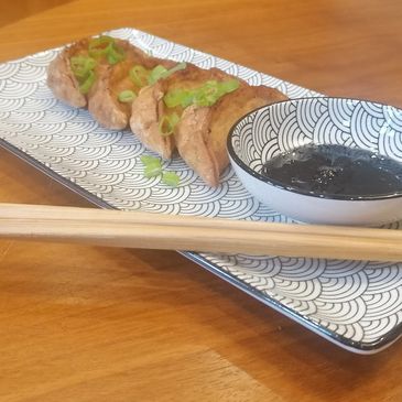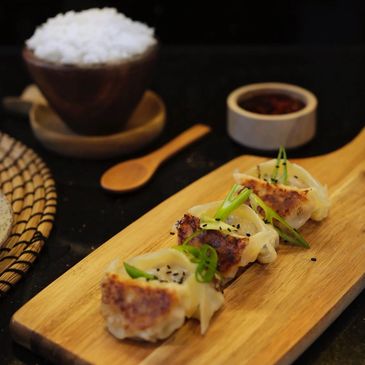Add some artistry and extra flavour to your gyozas: perhaps a shower of sesame seeds, a sprinkling of green onions, sprigs of fresh coriander, or a drizzle of sesame oil - you decide!